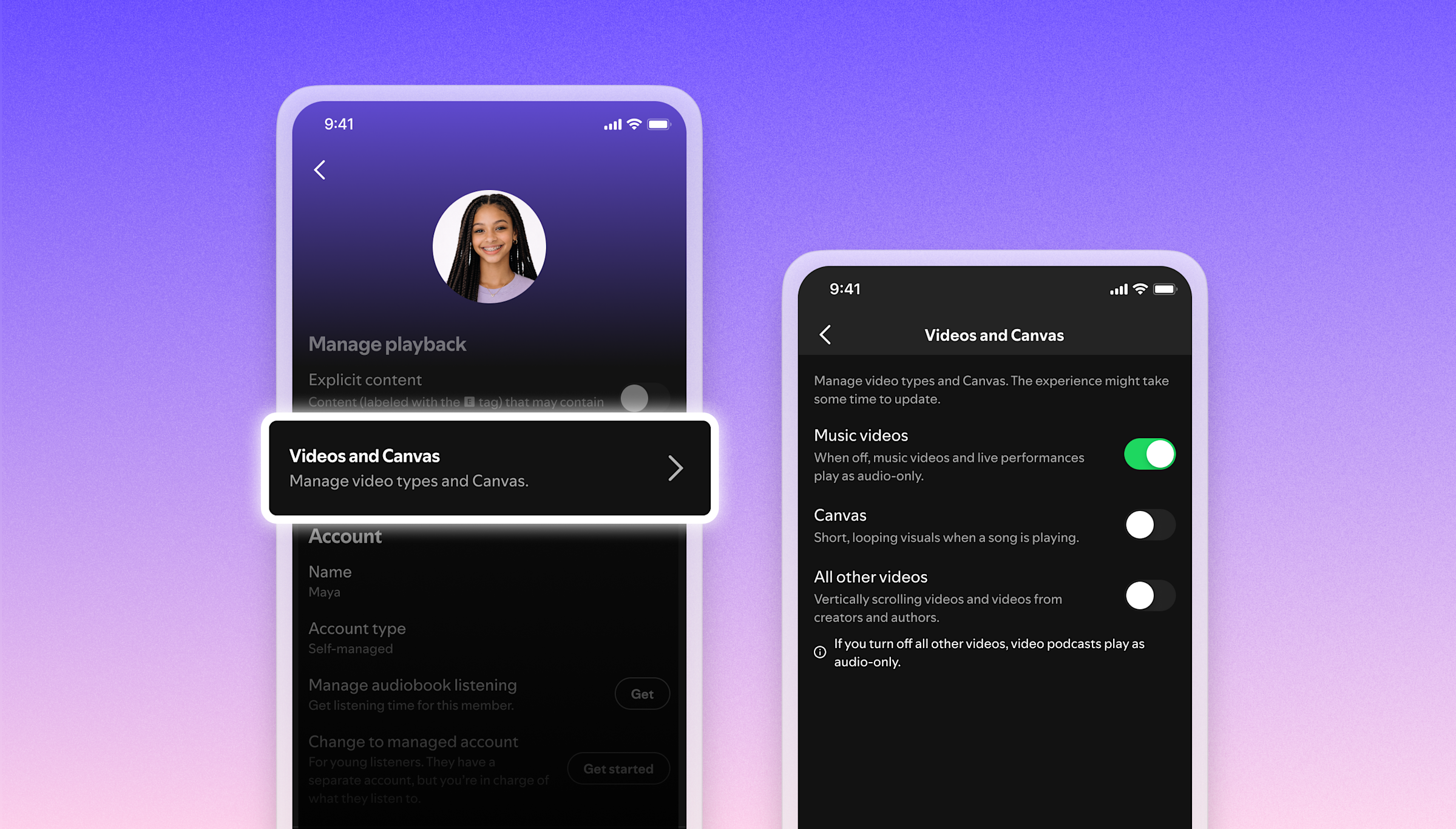 Spotify has added three independent video controls to its app, giving users the ability to turn off Canvas animations, music videos, and video podcasts separately, or all at once, across all their devices.